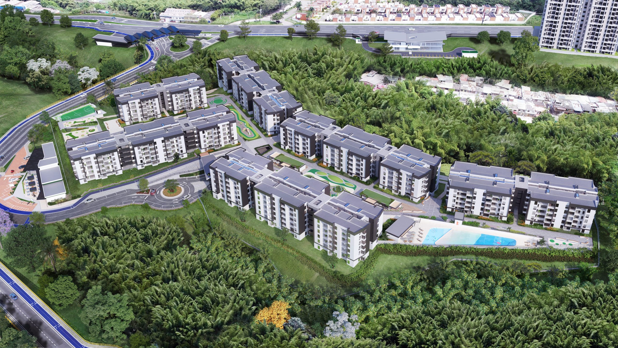 LA BRETAÑA Ciudad Verde, proyecto donde se formaliza una ciudadela residencial para el desarrollo VIS equipamientos PLUS, internos, acompañadas de Espacios naturales, ciclorutas, escenarios deportivos, vías, entre otros con estándares contemporáneos y un modelo sostenible y progresivo con un urbanismo que suple los estándares y necesidades de los residentes en un megaproyecto de gran impacto.